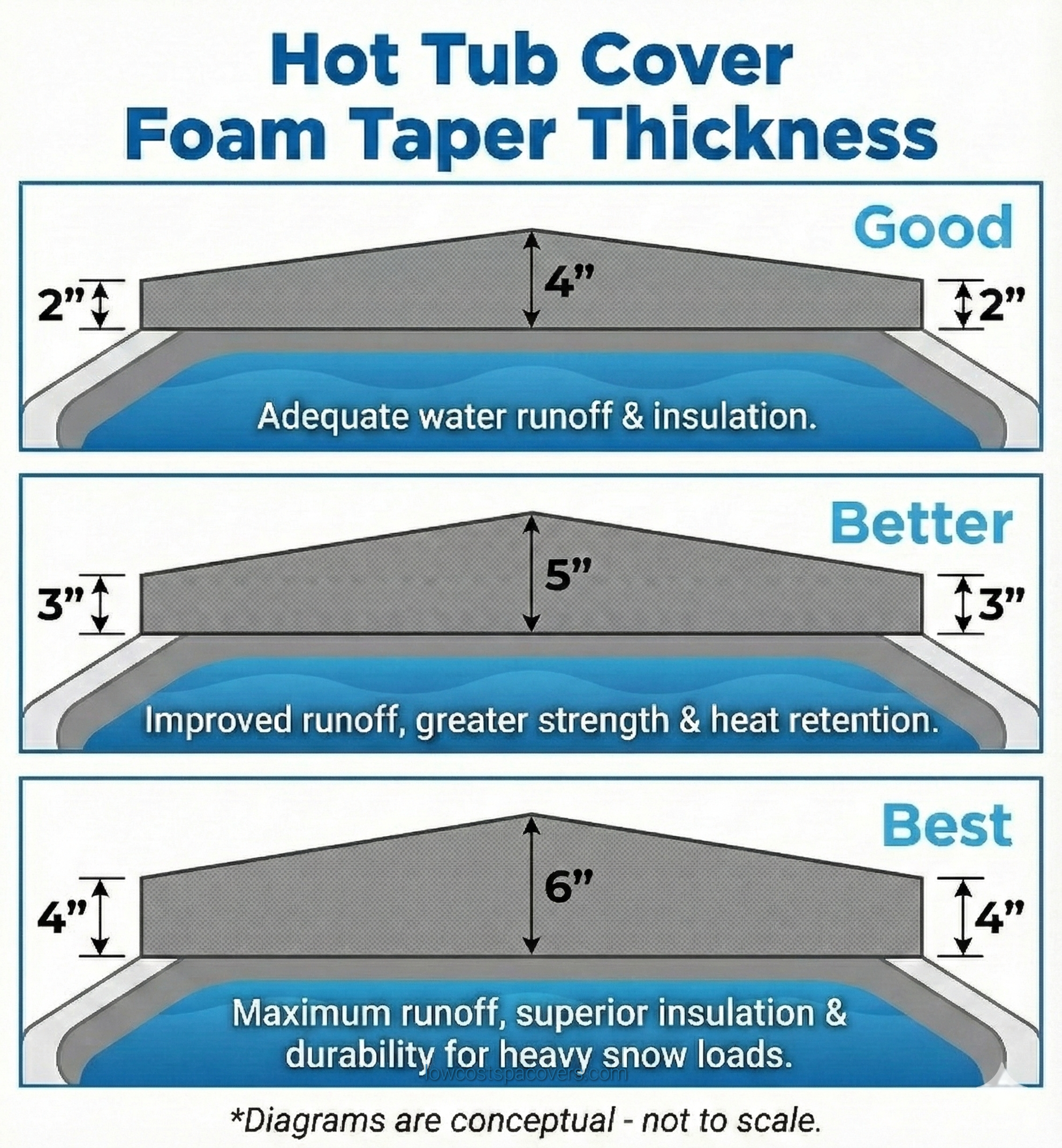 Foam density correlates with the strength and insulation (R-value) of spa covers. A denser or thicker foam increases the weight-bearing capacity of the cover and improves its insulating properties.